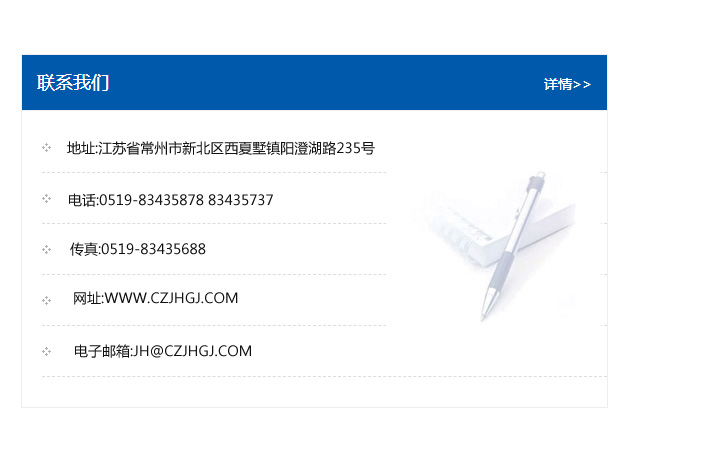 地址:常州市新北區(qū)友邦商務(wù)大廈1幢16、17層  電話:0519-85101652  傳真:0519-85112595  郵編:213022  網(wǎng)址:www_cz-jiayue_cn.hbfutian.com  郵箱:xiajifengaa@163.com